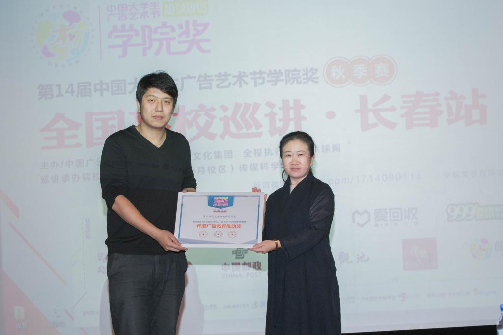 11月3日下午,由我校承办的第十四届中国大学生广告艺术节学院奖(秋季赛)·全国高校巡讲·长春站宣讲会在传媒科学学院123报告厅隆重举行。我校学生工作部部长、学生处处长金昕为宣讲会致辞,广告人文化集团渠道总监王晓鹿为东师传媒科学学院授予“年度广告教育推动奖”。